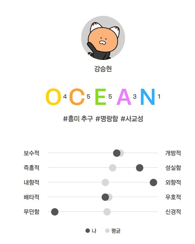 즉 성실성 53, 개방감 70 이런 식으로..!