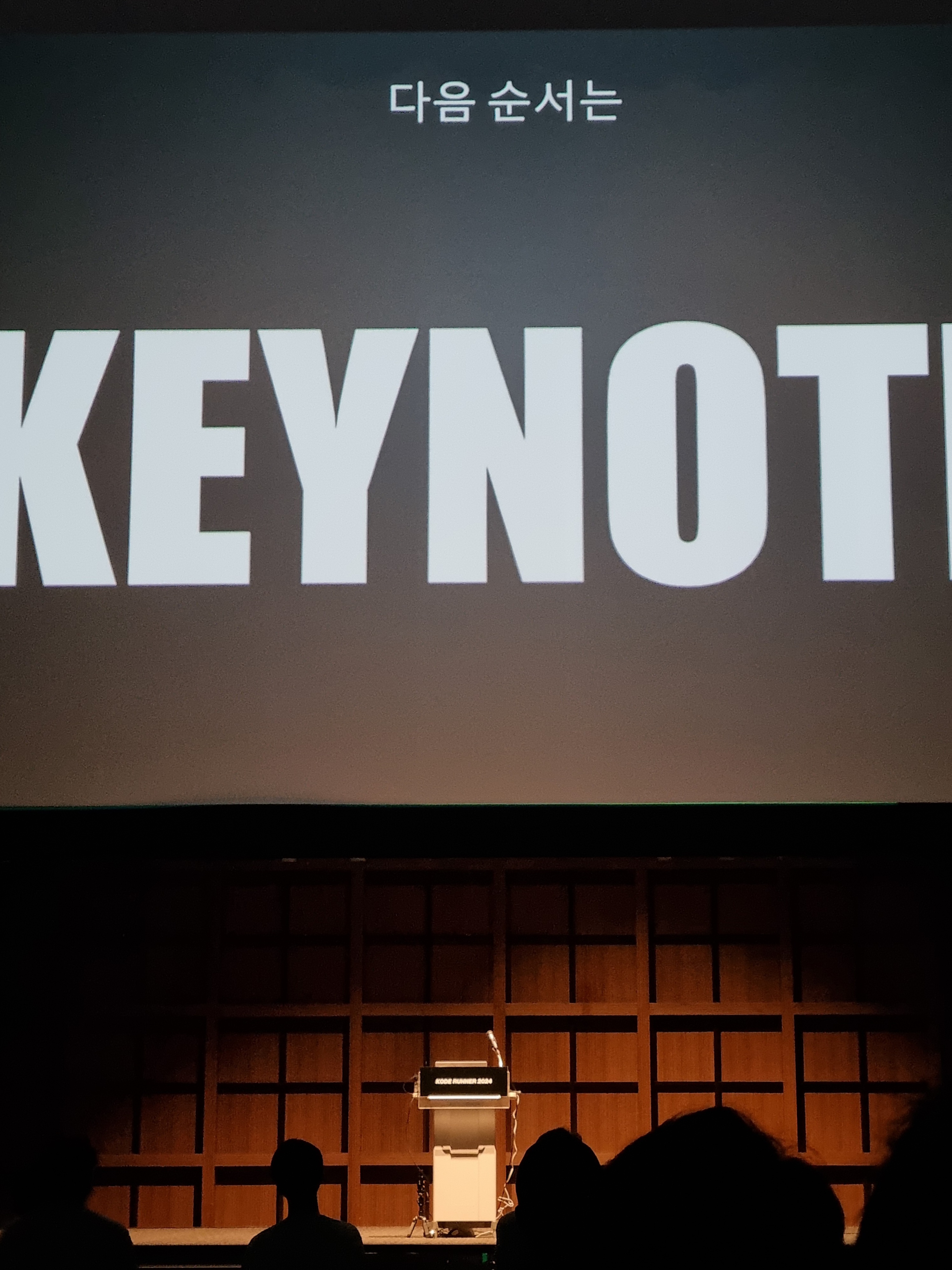 본격적인 행사에 앞서 CTO님께서 키노트를 진행하는 사진이다.