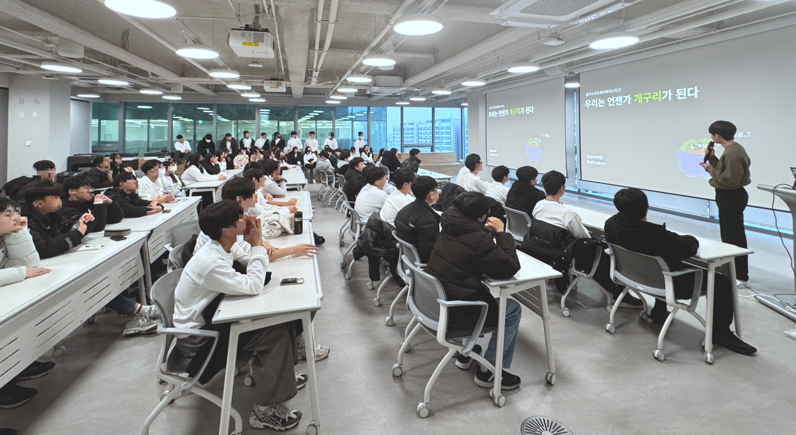 얼마 전, 카카오뱅크에 특별한 손님들이 찾아왔습니다. 바로 이제 막 고등학교에 입학하는 SW마이스터고 학생들이었어요. 약 80명의 학생들 앞에서 20분간 발표를 하게 되었죠. 평소처럼 개발자나 취업 준비생을 대상으로 하는 발표와는 완전히 달랐어요. 아직 실무 경험이 없는 학생들에게 어떤 이야기를 전해야 할까? 어떤 방향으로 접근해야 더 의미 있는 시간이 될까? 짧은 시간 안에 고민이 많았어요.
