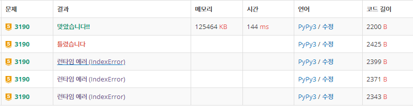 반례를 찾기 전까진 "맞왜틀"을 호소했습니다. IndexError가 일어나는 이유를 몰랐거든요.. 하지만 검증 과정에서 문제가 있었습니다.