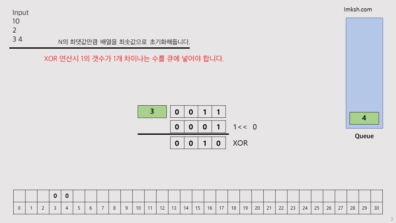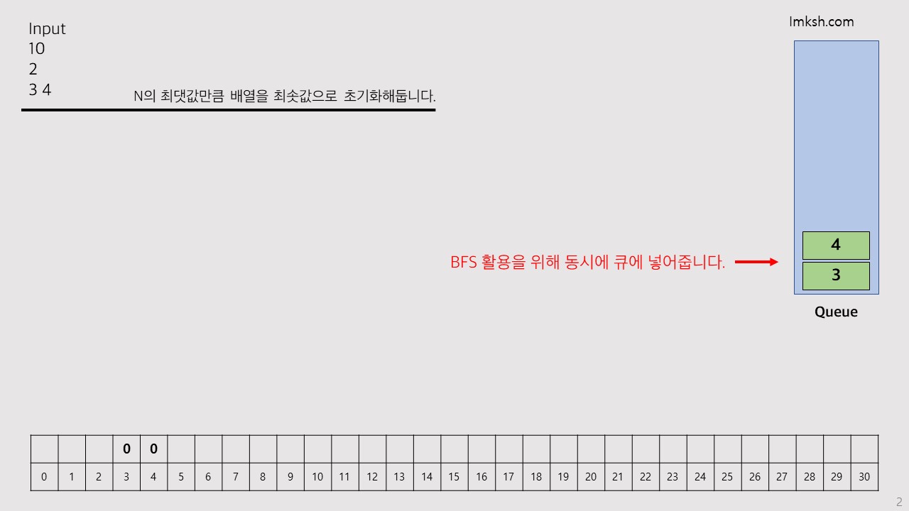 아래의 과정(BFS)을 반복적으로 거치고 나면 가장 처음에 입력된 값을 기준으로 1의 거리를 가진 간선들이 연결되어 있습니다.