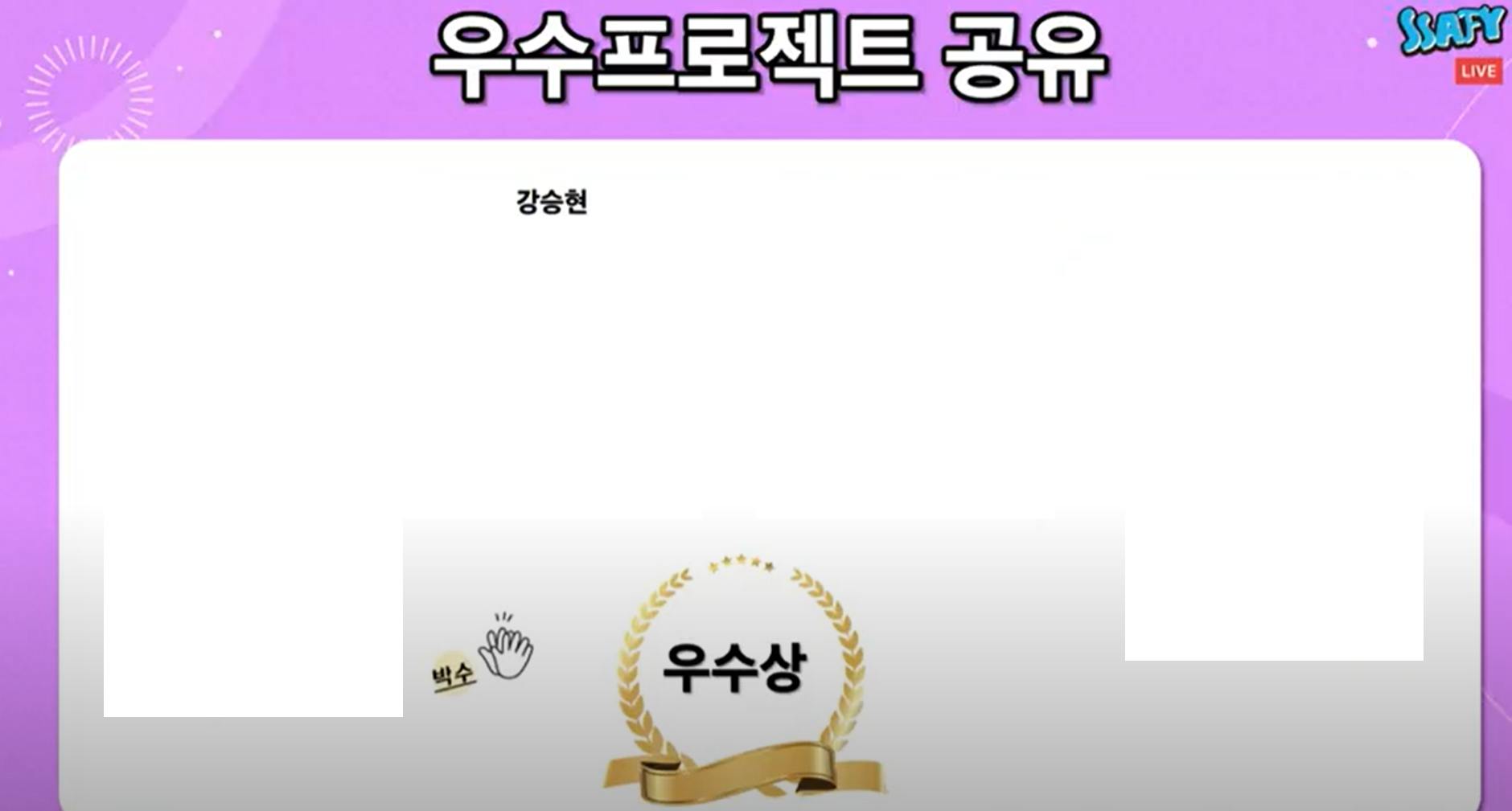 종강식 LIVE에서 수상 명단에 제 이름이 있는 것을 보고 눈을 의심했습니다.(사실 같은 반 분들이 말씀해주셔서 알았습니다)